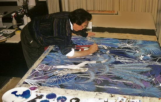 回頭分析自己的作品,丁紹光覺(jué)得,《生命之源》之所以有震撼力,首先就是因?yàn)榫薮蟮拿娣e。但畢竟是300多平方米,面積大,還不能空。所以,其感染力進(jìn)而有賴于線條的結(jié)構(gòu)。在這件壁畫(huà)中,線條是形式,也是邏輯,是串聯(lián),也是內(nèi)容本身。在施工之前,丁紹光畫(huà)了一張素描給施工方。素描所用的線條,極細(xì)密,在他畫(huà)畫(huà)的時(shí)候從來(lái)沒(méi)畫(huà)過(guò)那么細(xì)的線條。因?yàn)榭紤]到要放大100倍之后放到玻璃上去,線條一旦粗了,別人就不知道該用什么顏色去填這些線條。
