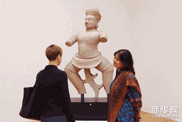 一個(gè)10世紀(jì)砂巖制的東南亞雕像在美國(guó)紐約蘇富比2011年亞洲藝術(shù)周拍賣預(yù)展上展出