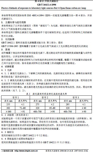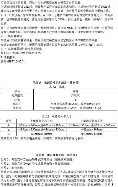 GB/T 16422.4-1996塑料實驗室氙燈光源曝露老化試驗方法:http://www.naturefibre.cn/uploadFile/softdown/2008103142397005.pdf