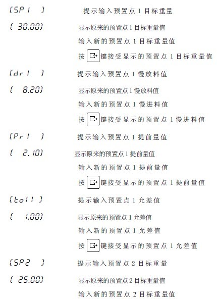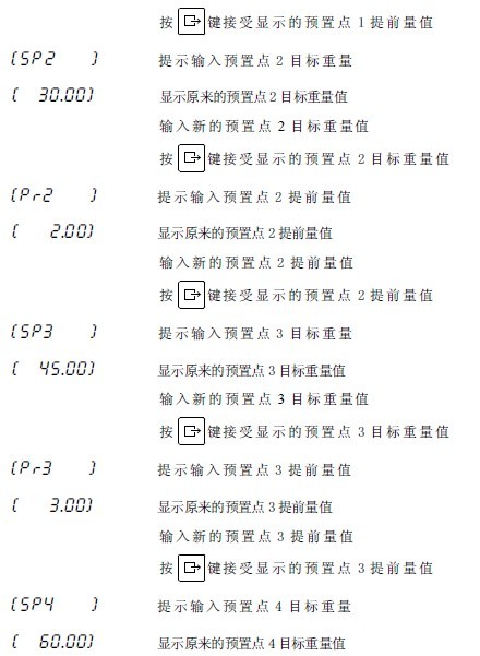 鍵,儀表進(jìn)入預(yù)置點參數(shù)輸入方式。按照軟開關(guān)設(shè)置參數(shù)42、43 和44的不同設(shè)置,ST300共有8 種組合。兩種常見的設(shè)置方式如下: