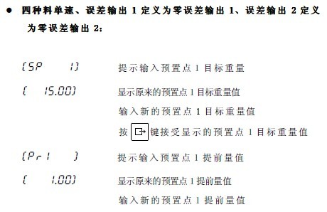 兩種料雙速、誤差輸出1 定義為預(yù)置點允差輸出1、誤差輸出2定義為預(yù)置點允差輸出2: