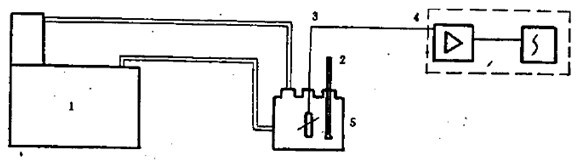 1:恒溫水槽、2:玻璃棒溫度計、3:溫度傳感器、4:數字電壓表(測量放大、自動顯示)、5:循環杯 將測試得出的溫度按下式進行計算: △T=±(Tmax-Tmin)/2 式中:△T→溫度波動度℃; Tmax→最高溫度值℃; Tmin→最低溫度值℃。