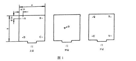 測試點(diǎn)的數(shù)量與工作容積大小的關(guān)系為:a、工作室容積不大于1立方米時(shí),測試點(diǎn)為9個(gè),布放位置如圖1所示;