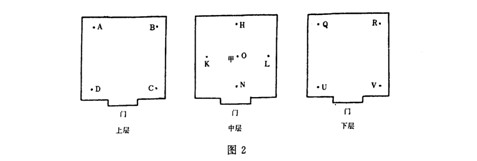 A,B,...,U,V—溫度測試點(diǎn); 甲—濕度測試點(diǎn)