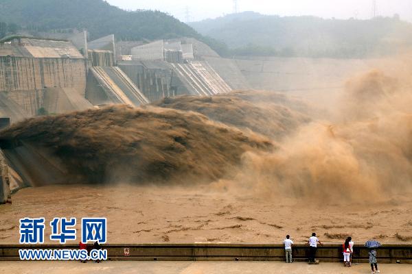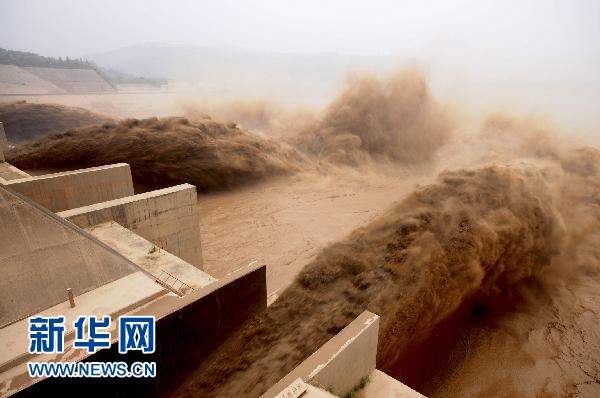 7月27日,黃河小浪底水庫在泄洪。